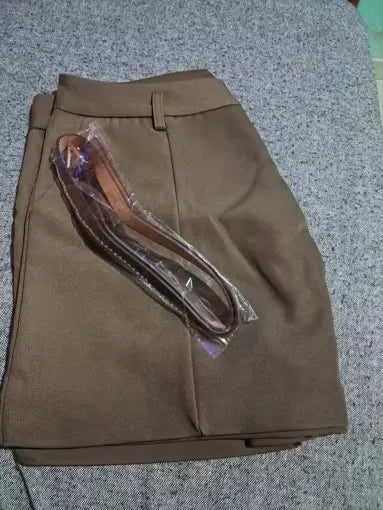 The A-line cut and high waist create a flattering fit, while the vintage belt adds a stylish touch. They easily transition from casual to formal settings.